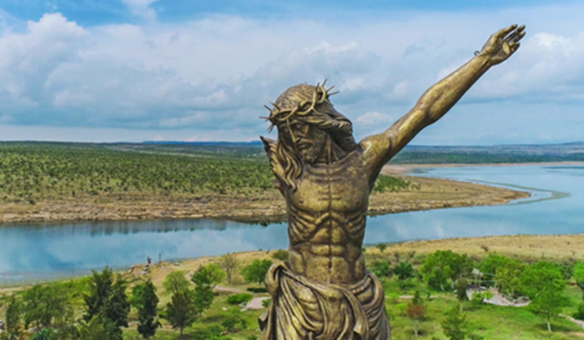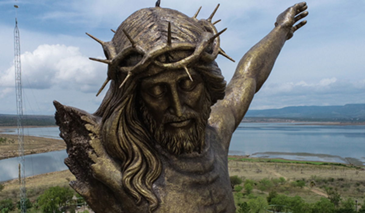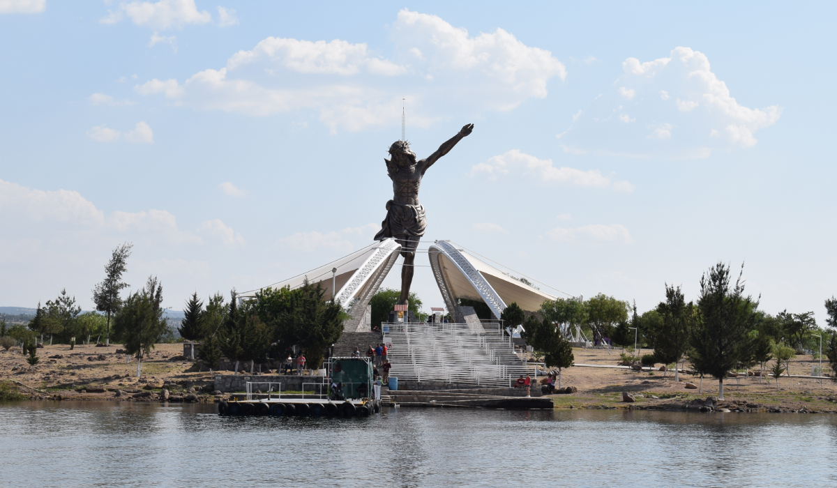 La travesía comienza desde que subes a la lancha que cruza la presa. Mientras el agua refleja los tonos del cielo y las montañas se levantan alrededor, la imponente figura de 25 metros de altura empieza a revelarse a lo lejos. Al llegar, una escalinata conduce hasta el santuario, donde el Cristo incompleto —sin un brazo, una pierna ni la cruz— recibe a los visitantes con un mensaje profundo de fe, resiliencia y memoria.